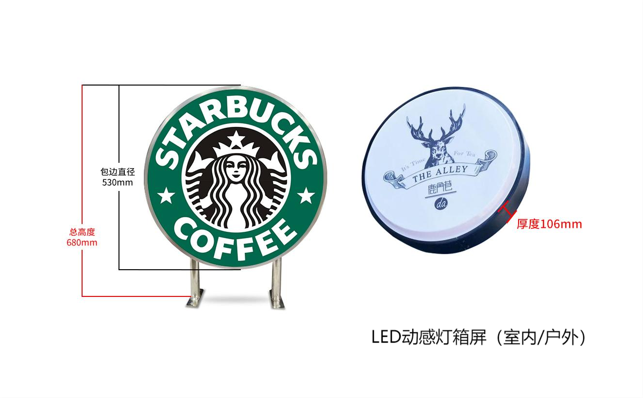 室内/户外圆形动态LED灯箱屏:直径-305MM;直径512MM(可定制尺寸)