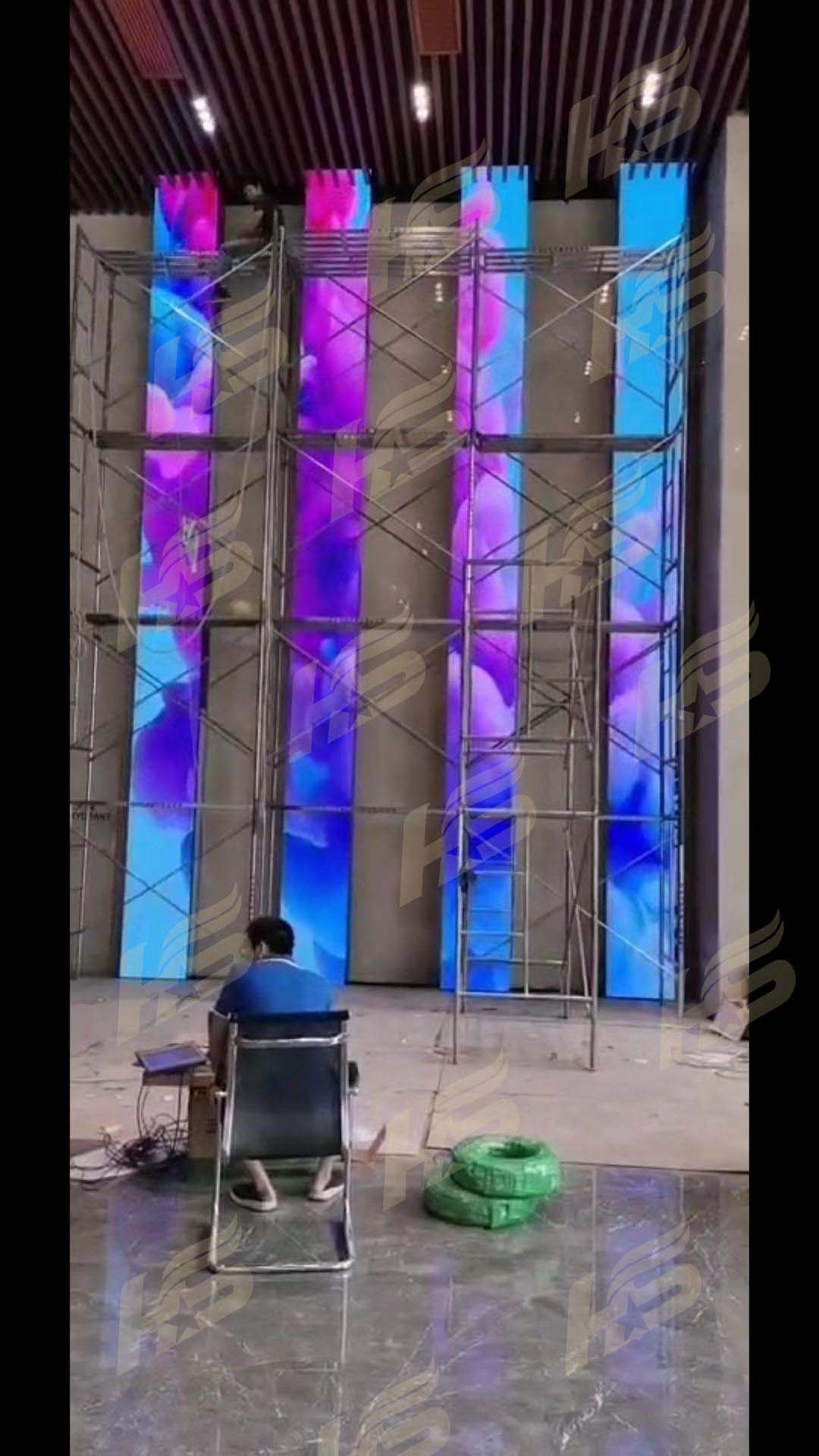 随着音乐节奏轻快的跳跃中,,,,一块25平方米正常播放视屏的高清平面LED显示屏徐徐得往两边 打开,,就像一扇附有灵魂的大门一样,,,,开至特定距离后再次往外平均分为4块竖条型的小屏幕,,单独播放着各自画面,,当4块LED屏幕再次合并为一个整体的大屏幕时画面再次合并成为一个整体画面,,,画面如此震撼,,,清晰并大屏幕没有任何缝隙的连接。。