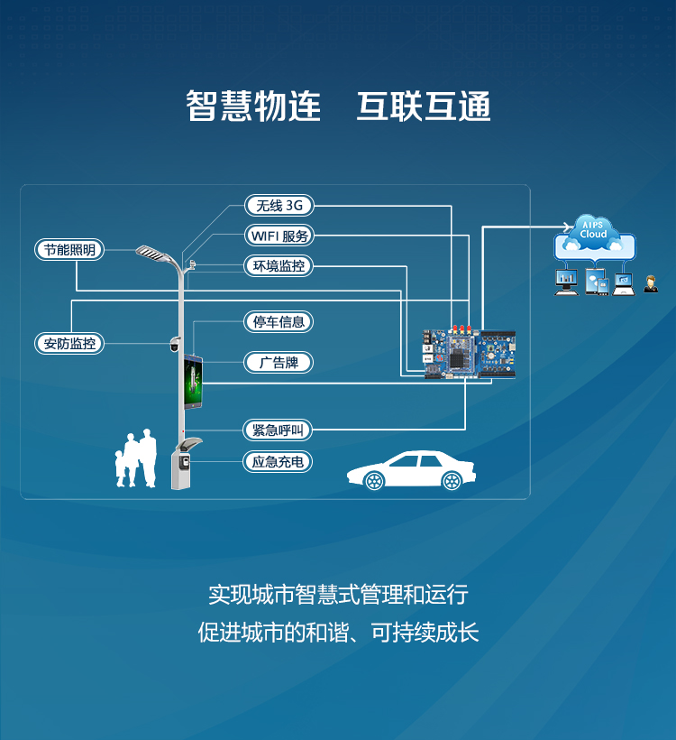 智慧城市是一种集成各种信息设备技术创新复合应用的智慧路灯产品的新型智能设备。。。依托熙讯AIPS云平台,,,,实现智能照明、、、智慧交通、、、、市政、、、互联互通等诸多应用。。