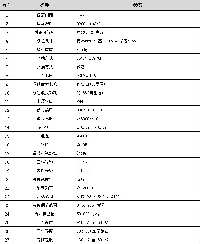 点间距:16mm