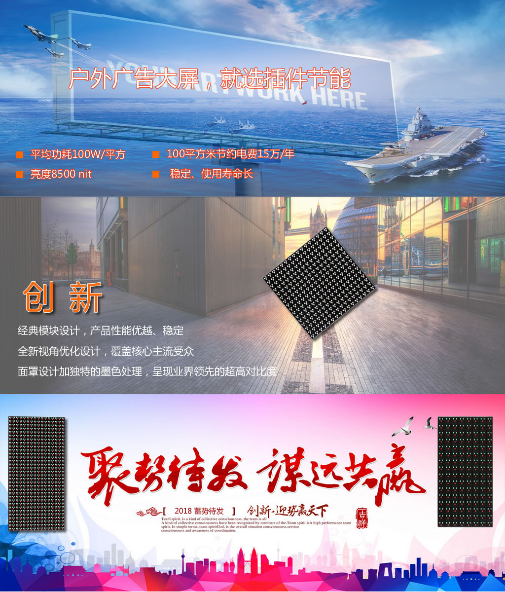 3、、、、高效节能:采用尊龙时凯LED广告屏节能产品,,,,低功耗驱动的超高亮LED,,可节能≧65%以上,,,,配合温控、、显控、、亮控技术、、、带PFC设计的电路,,,,整体上达到节能效果;